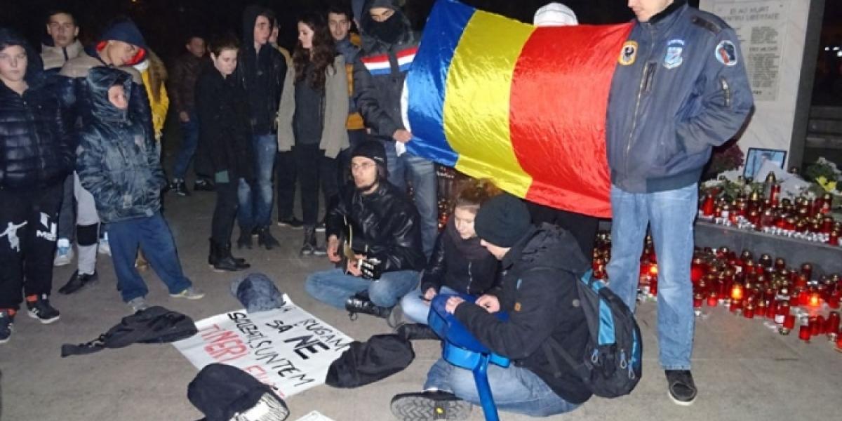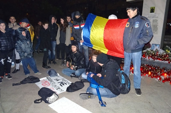 Sâmbătă seară, doar 50 de persoane au mai ieşit pe platoul din faţa Prefecturii pentru a protesta. Aceştia au fost paşnici, au aprins lumânări pentru cei care şi-au pierdut viaţa în clubul „Colectiv" şi s-au încălzit cu ceai fierbinte. Nu au mai scandat, ci au socializat între ei.
