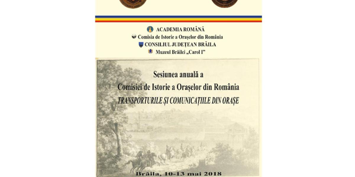 Academia Română – Comisia de Istorie a Oraşelor din România, în colaborare cu Muzeul Brăilei “Carol I”, organizează în perioada 10-13 mai 2018, în sala “Regele Ferdinand şi Regina Maria” a Muzeului Brăilei “Carol I” din Piaţa Traian, nr. 3, sesiunea anuală a Comisiei de Istorie a Oraşelor din România. Tema acestei ediţii o reprezintă: Transporturile şi comunicaţiile din oraşe.