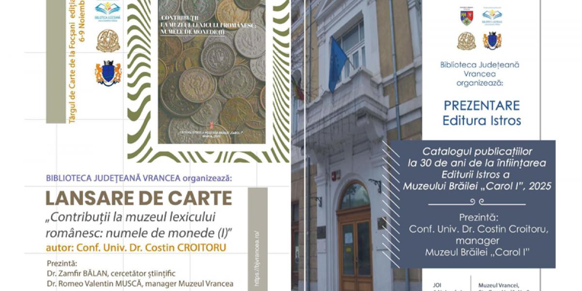 Evenimentul are loc în perioada 6-9 noiembrie 2025, în foaierul Muzeului Vrancei. Joi, 6 noiembrie, a avut loc prezentarea Catalogului publicațiilor la 30 de ani de la înființarea Editurii Istros a Muzeului Brăilei „Carol I”. Vineri, 7 noiembrie, de la ora 15:00, are loc lansarea cărții al cărui autor este conf. univ. dr. Costin Croitoru, managerul Muzeului Brăilei „Carol I”, intitulată „Contribuții la muzeul lexicului românesc: numele de monede (I)”. Prezintă: conf. univ. dr. Zamfir Bălan, cercetător științific, și dr. Romeo Valentin Muscă, managerul Muzeului Vrancei.