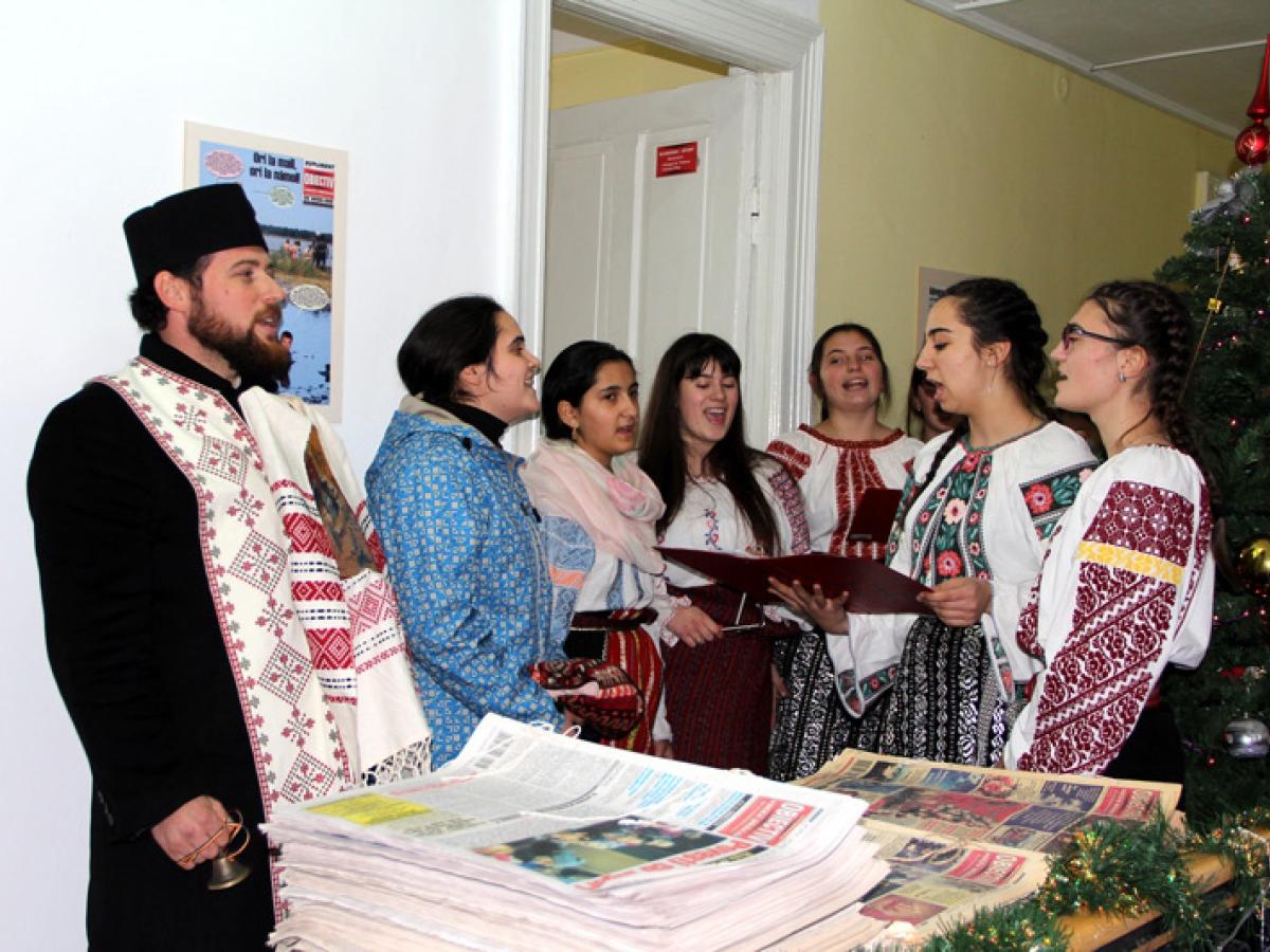 Pentru al doilea an consecutiv, părintele parohiei “Sf. Ioan Botezătorul” din Ianca a venit cu o ceată de colindători la redacţia “Obiectiv - Vocea Brăilei”. Fetele, îmbrăcate în port popular, au cântat colinde vechi, rar auzite pe la uşile creştinilor în preajma Crăciunului. La fel de special a fost şi programul artistic pregătit copiii din satul Oancea, comuna Romanu. Coordonaţi de preotul paroh Voineag Neculai, cei 16 micuţi au fredonat colinde vechi.