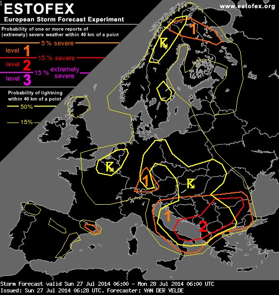 Pentru Brăila, pentru intervalul cuprins între orele 15.00 și 17.00 ale zilei de duminică, 27 iulie, a fost emisă o avertizare de cod galben. Ea este valabilă și pentru județele Ialomița, Călărași, Prahova, Buzău și nordul județului Dâmbovița. Potrivit Administrației Naționale de Meteorologie, se vor semnala: frecvente descărcări electrice, grindină, intensificări ale vântului cu aspect de vijelie, cantități de apă ce vor putea depăși 25-30 l/mp.