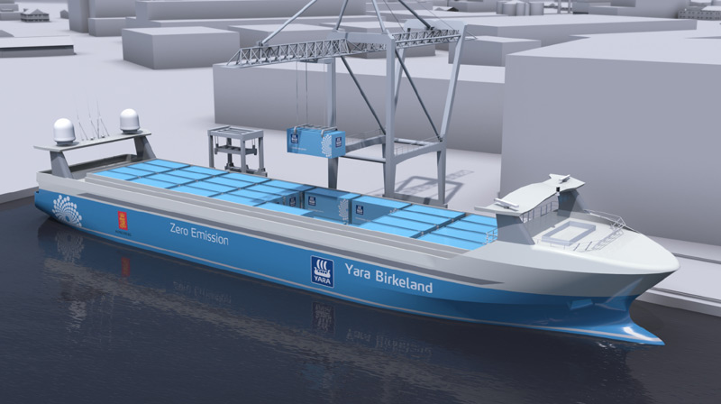 Nava, proiectată de Marin Teknikk în strânsă cooperare cu Yara, este programată pentru livrare de la Vard Brevik, în Norvegia, în primul trimestru al anului 2020. Cei de la Kongsberg sunt responsabili pentru tehnologiile de la bordul viitoarei nave, inclusiv pe parte de autonomie şi manevrare de la distanţă a vasului.