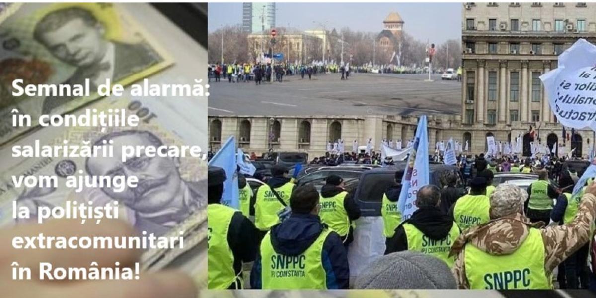 Sindicaliștii arată că, la jumătatea lunii februarie, polițiștii au încasat salariile pe ianuarie, care, cel puțin teoretic, au fost “majorate” dar chiar și așa salariul de funcție al polițistului este egal cu salariul minim pe economie. În acest context, reprezentanții SNPPC acuză guvernanții că îi tratează cu bătaie de joc pe oamenii care pun umărul la siguranța publică, motiv pentru care majoritatea tinerilor polițiști care au intrat în sistem cu speranțe și așteptări s-ar gândi acum să plece, prin demisie, dezamăgiți de raportul inegal și nedrept dintre salariul primit și riscurile/interdicțiile/îngrădirile pe care legea îi obligă să le respecte.