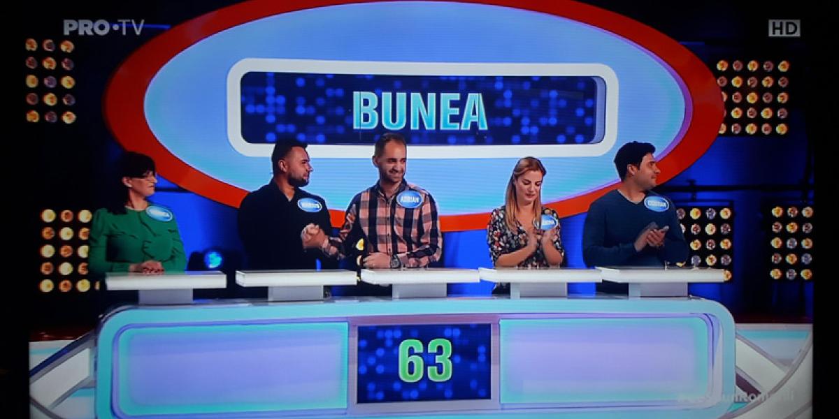 Uite că de data asta nepotul lui BuneaStancu, dimpreună cu prietenii lui, a meritat fiecare ban câştigat. La ediţia de marţi seară, difuzată de ProTV, nepotul lui Bunea Stancu (familiaBunea) a câştigat competiţia (nu mă întrebaţi şi câţI bani a luat, că nu am fost atent), aşa că a participat şI miercuri seară. Unde s-a descurcat onorabil, cel puţin din câte am văzut eu, că dup-aia am schimbat pe alt canal şi nu am mai revenit peProTV ca să văd deznodământul.