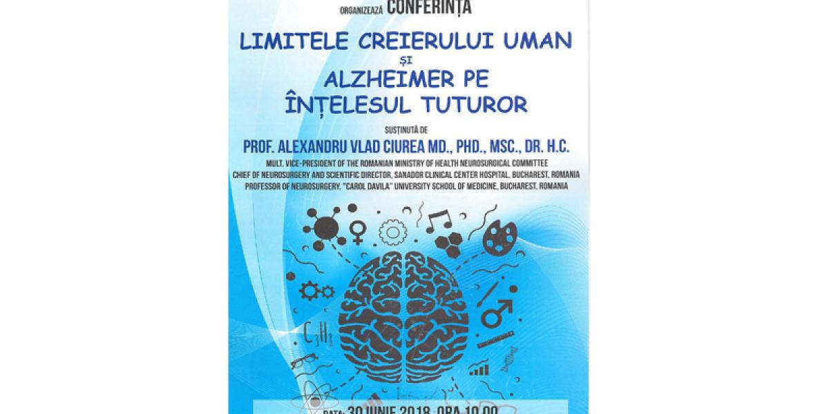 Sâmbătă, 30 iunie 2018, ora 10.00, la sediul Bibliotecii Judeţene “Panait Istrati” din Piaţa Poligon, nr.4 va avea loc conferinţa “Limitele creierului uman şi Alzheimer pe înţelesul tuturor”, susţinută de prof. dr. Alexandru Vlad Ciurea, renumit medic neurochirurg.