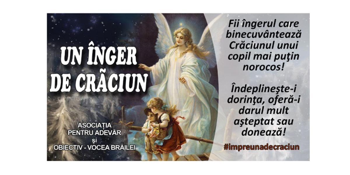 În urmă cu exact o săptămână Asociaţia Pentru Adevăr şi cotidianul “Obiectiv - Vocea Brăilei” deschideau campania “Un înger de Crăciun”, demers prin care încercăm să îl aducem pe Moş Crăciun în casele copiiilor mai puţin norocoşi din Brăila. În doar şapte zile, pe adresa de mail şi pe reţelele de socializare am primit peste 100 de mesaje de la oamenii care doreau să ofere o fărâmă de bucurie copiilor. Unii dintre voi aţi ales să le procuraţi personal cadourile pe care şi le doresc aceştia, alţii aţi făcut donaţii în bani, iar volunatrii noştri vor avea grijă ca dorinţele lor să se împlinească. Şi ieri au sosit donaţii la redacţie, doi brăileni cu suflet mare dăruind câte 100 lei, bănuţi cu care vom cumpăra cadouri ce vor ajunge în sacul Moşului.