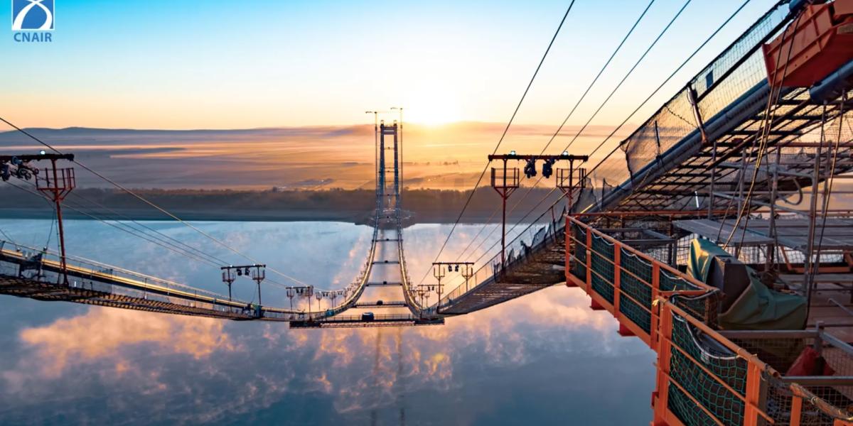 * Compania Națională de Administrare a Infrastructurii Rutiere (CNAIR) a publicat, vineri, un videoclip care prezintă stadiul lucrărilor la podul suspendat peste Dunăre și la drumurile conexe * este vorba despre un calup de imagini spectaculoase care rulează timp de 1 minut, dar care reliefează foarte bine modul în care arată mega-proiectul ce se realizează la Brăila