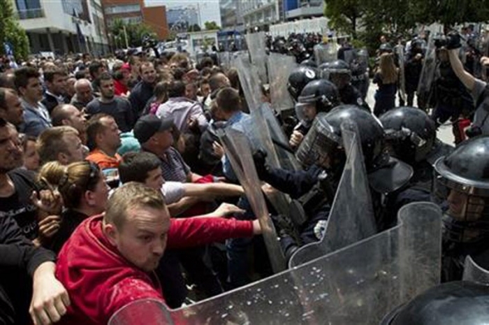 Poliţia antirevoltă, sprijinită de unităţi ale Forţei NATO în Kosovo (KFOR), a închis în cursul zilei accesul pe podul de pe Ibar - râul care separă părţile sârbă şi albaneză ale oraşului Kosovska Mitroviţa (nord) - pentru a-i împiedica pe manifestanţi să-l traverseze, potrivit unui jurnalist al AFP.