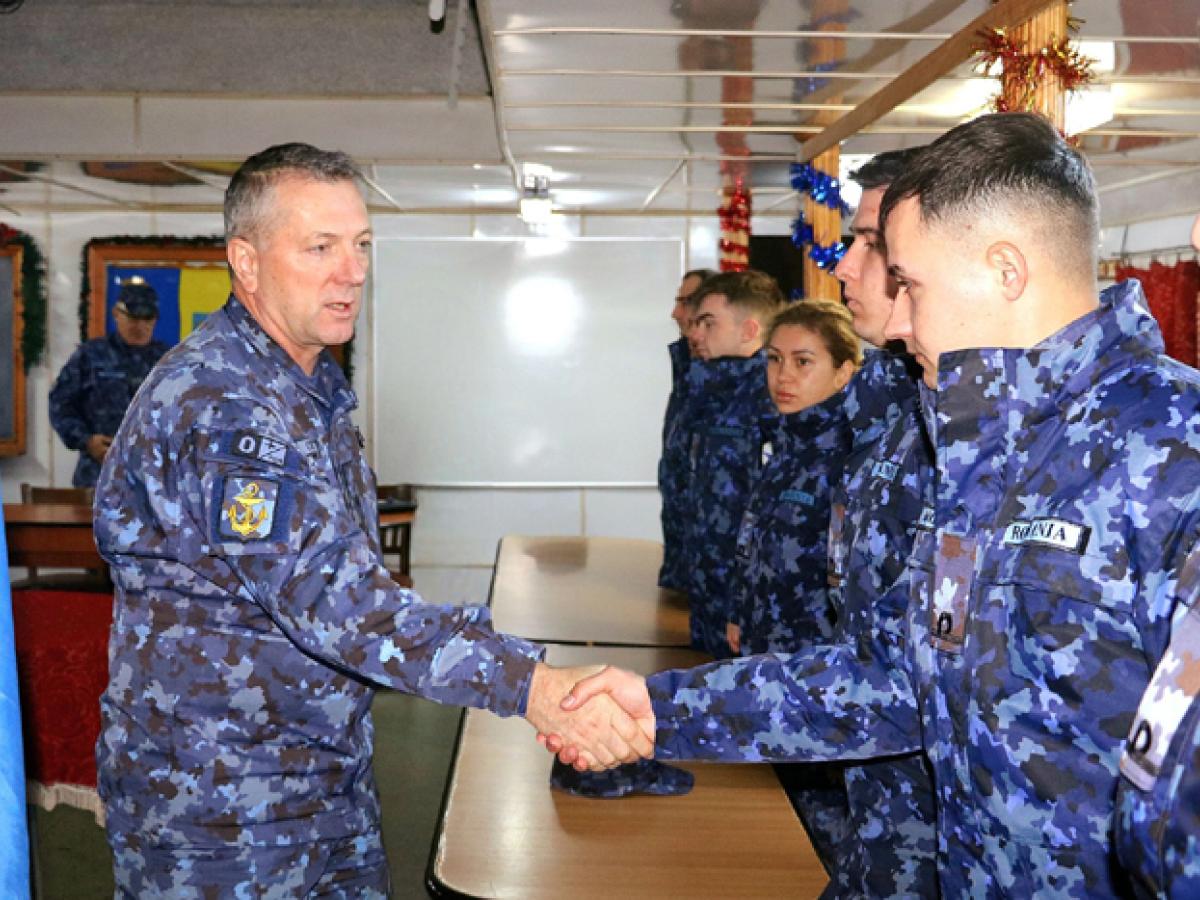 Întâlnire, la final de an 2024, a comandantului Flotilei Fluviale „Mihail Kogălniceanu” de la Brăila cu noua generație de ofițeri ai Forțelor Navale Române.