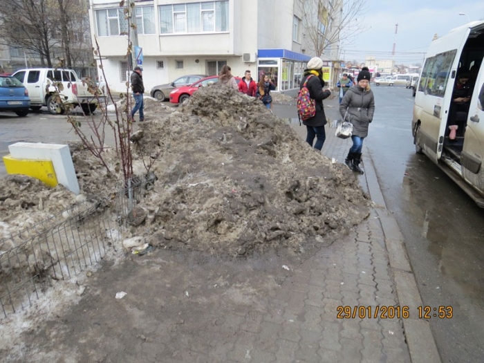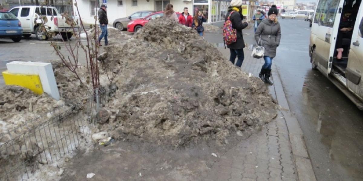 Cu ani în urmă, Inspectoratul pentru Protecţia Mediului soma Primăria să ridice imediat mormanele de zăpadă murdare şi poluante. Acum, multe intersecţii şi trotuare, spaţii verzi, staţii de autobuz, pieţe etc stau blocate/flancate cu amintita zăpadă, autorităţile locale aşteptând comod până când soarele, vântul, ceaţa şi ploile o vor topi.
