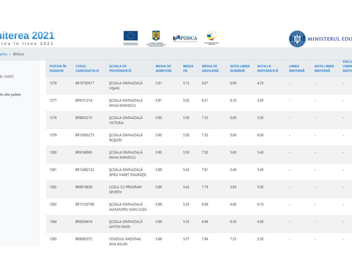 Reamintim că în în județul Brăila, pentru anul școlar 2021-2022 sunt disponibile 1.582 locuri în 63 clase, împărțite astfel: 910 locuri la liceele teoretice (754 locuri în municipiu și 156 locuri în județ), 216 de locuri la liceele vocaționale și 456 locuri la liceele tehnologice (384 în municipiu și 72 în județ).