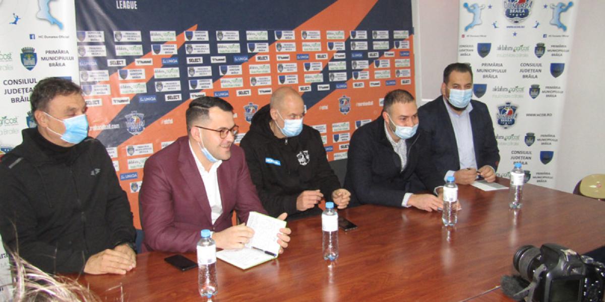 Votați joia trecută în Adunarea Generală a Acționarilor, noii conducători de la HC Dunărea, Adrian Manole și Marian Jinga, au susținut vinerea trecută o conferință de presă, la care, bineînțeles, au fost prezenți foștii șefi, George Caranica și Marian Neta, precum și antrenorul Morten Soubak.