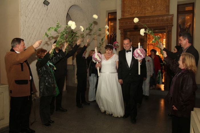 Fericiţi şi vizibil emoţionaţi, cei doi şi-au unit destinele mai întâi la starea civilă, conform uzanţelor, apoi în faţa Divinităţii, în impresionantul lăcaş Catedrala "Naşterii Domnului" din municipiu. Familia, prietenii şi colegii le-au fost alături în această unică zi din viaţă, felicitându-i şi urându-le "Casă de Piatră!". Naşi le sunt Costel Filip, de asemenea colegul nostru, redactor departamentul Sport, şi soţia acestuia, Mariana.
