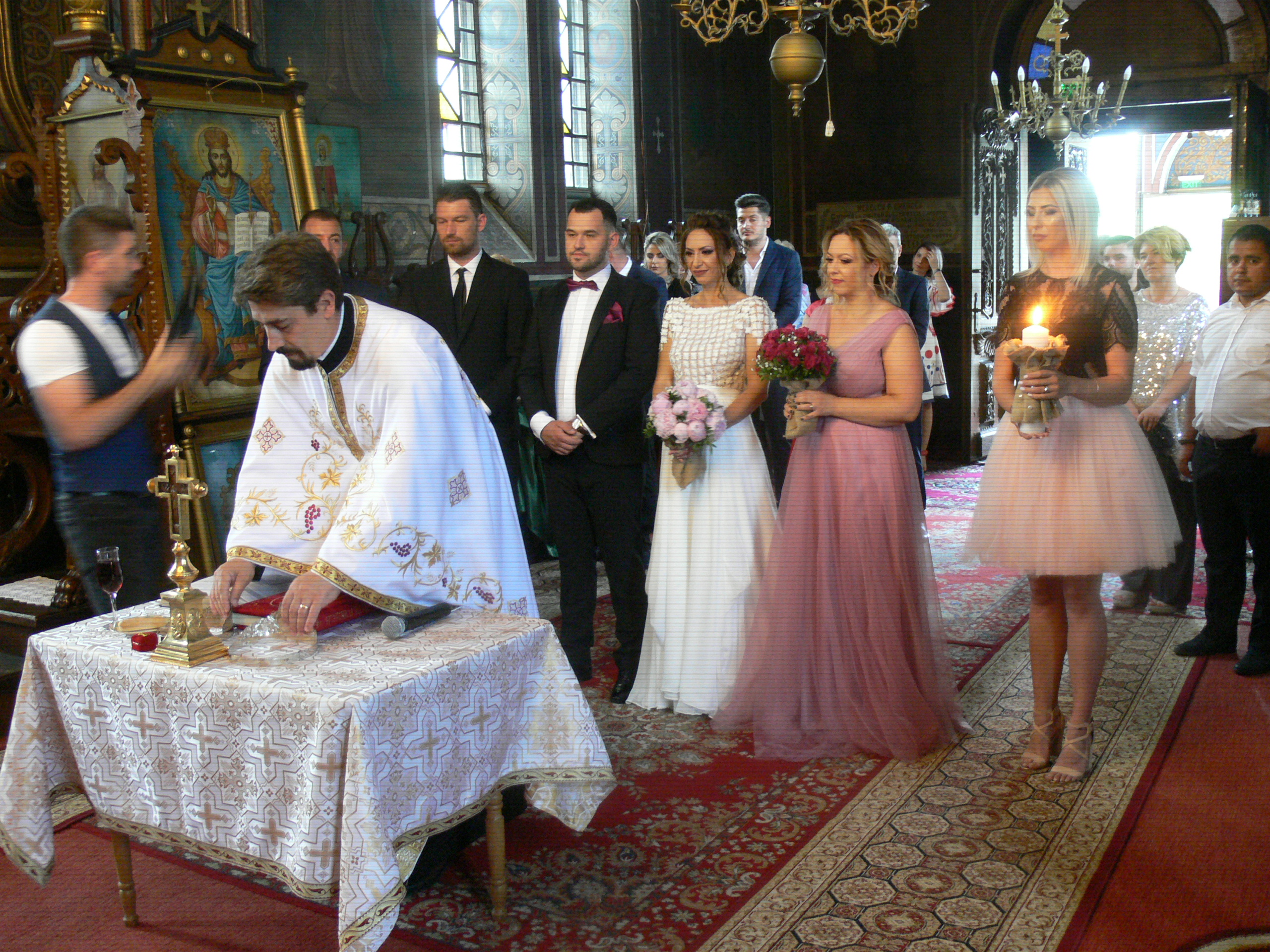 După ce au spus “Da” în fața ofițerului stării civile în noiembrie 2018, Anca și George Caranica și-au pus pirostriile, în cadrul unei ceremonii religioase care a avut loc începând cu ora 15.30 la biserica “Sfântul Mina”.