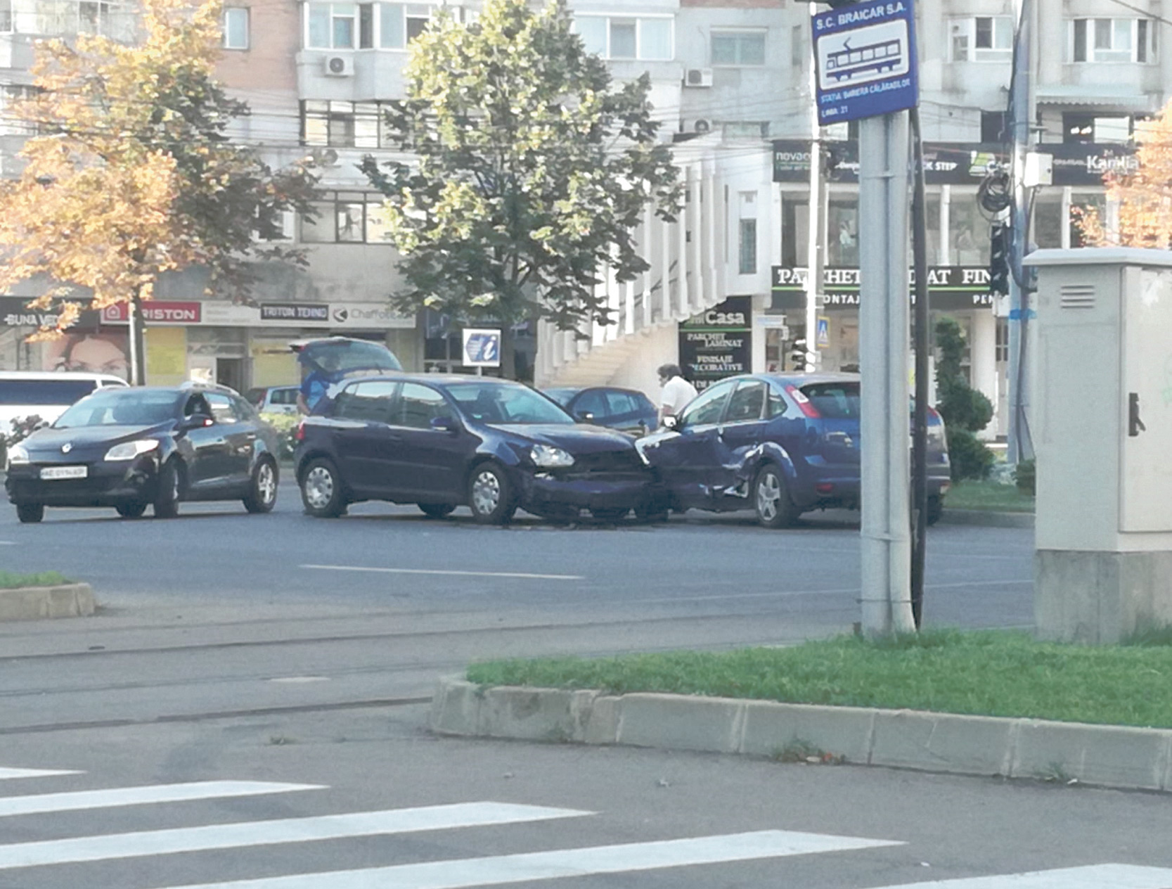 Un accident rutier s-a produs în Bariera Călăraşilor din cauza unei şoferiţe care a ignorat culoarea semaforului. Ea a trecut pe roşu şi a intrat în coliziune cu un alt autoturism.