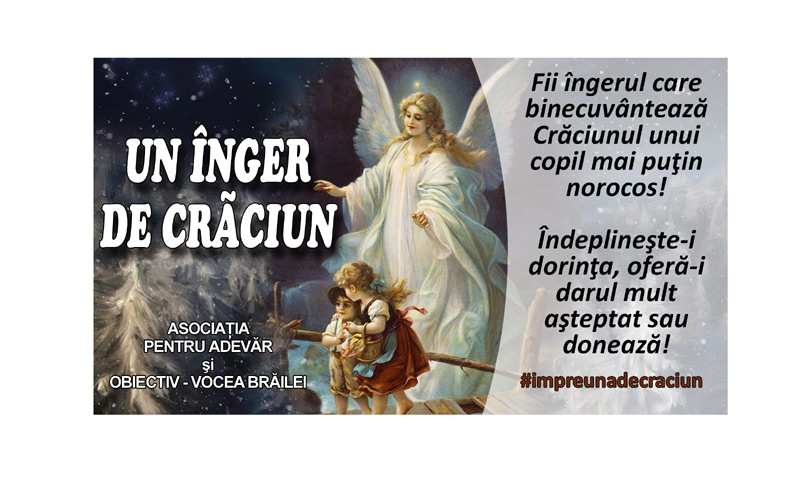 “Oamenii care au dragoste şi bunătate se aseamănă cu îngerii care transmit bucurie şi veselie, oriunde s-ar afla”. Acestea sunt cuvintele rostite de Sfântul Cuvios Paisie Agioritul, cuvinte pe care le-am putem folosi şi noi pentru a o descrie pe o elevă de clasa a X-a a Colegiului Naţional “Gh. M. Murgoci”. Adolescenta se numeşte Anca Tudorie şi, deşi aceasta ar fi preferat să rămână anonimă, noi credem că numele şi povestea ei ar trebui să fie cunoscute. Gândindu-se la oamenii care se confruntă cu diverse probleme şi au nevoie de ajutor, Anca şi familia ei au pus deoparte bănuţi pentru a le putea face acestora viaţa un pic mai uşoară. Altfel spus, şi-au dorit să dăruiască suma adunată unei cauze umanitare şi când au citit articolul despre campania “Un înger de Crăciun”, deschisă de cotidianul “Obiectiv - Vocea Brăilei” şi Asociaţia pentru Adevăr, au spus că trebuie să fie “îngeri” pentru micuţii care speră ca Moş Crăciun să ajungă anul acesta şi pe la casele lor. Aşa că, ieri, în zi de mare sărbătoare creştină, din partea acestei fete şi a părinţilor ei am primit la redacţie suma de 2.720 lei, bani care vor fi folosiţi pentru a le oferi copiilor cadourile mult visate, daruri care, aşa cum spuneau chiar ei în scrisorele, le vor face inima să râdă. Mai mult, pentru că în scrisorile postate pe pagina evenimentului cei mici spuneau că cizmuliţele le-ar fi de mare folos, pe lângă donaţia în bani ne-a fost dăruită şi o pereche de ghetuţe “îmblănite” care să ţină de cald în zilele geroase unui copil.