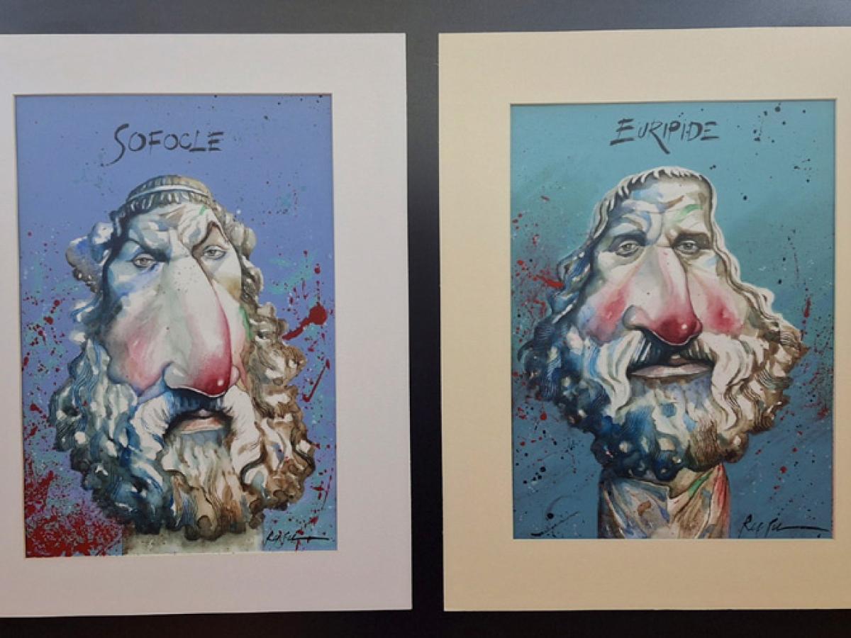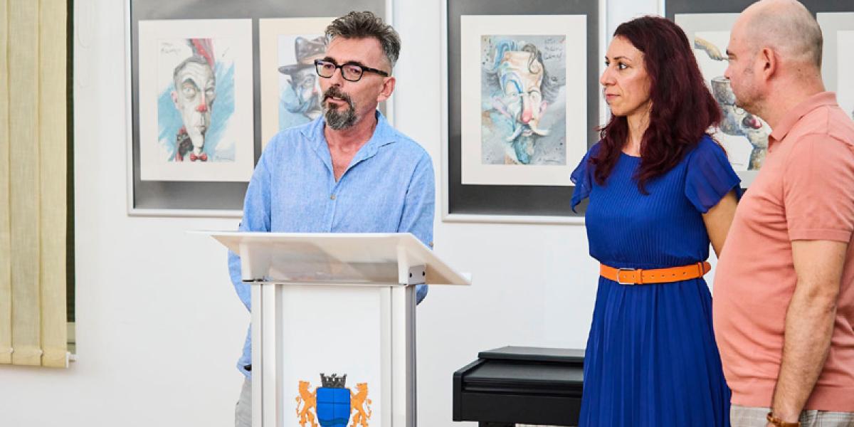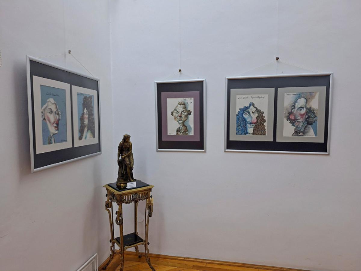 • pe tot parcursul lunii octombrie, vizitatorii pot vedea portrete ale marilor dramaturgi ai lumii, în viziunea artistului Gabriel Rusu, grafician, caricaturist, scenograf • autorul a obținut Marele Premiu la Salonul Internațional de Caricatură de la Brăila, în anul 2019