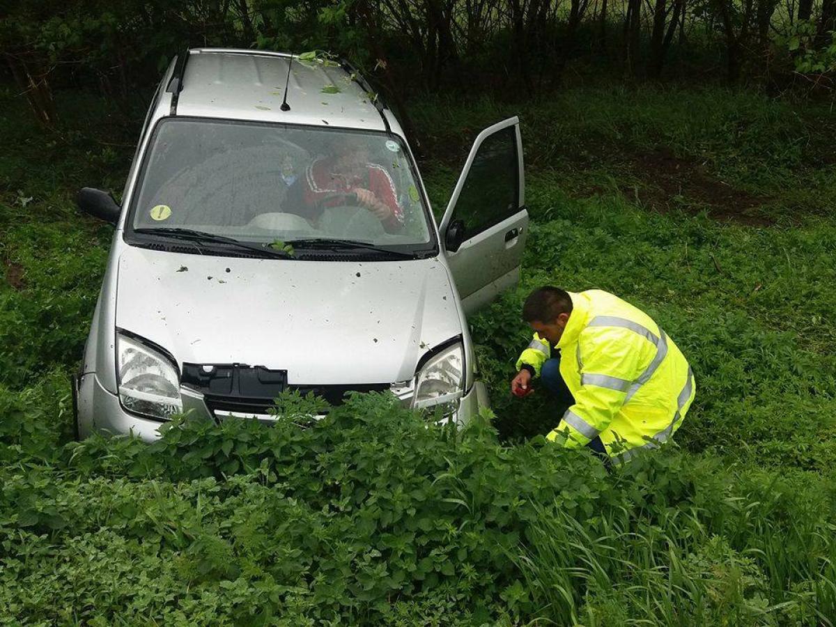 În urmă cu puțin timp, o mașină condusă de un șofer începător a ieșit "în decor" pe Șoseaua de Centură, în zona Poligonului Vulpea, și a ajuns în vegetația de pe marginea drumului. Cel care conducea autoturismul a spus că a evitat impactul cu un alt vehicul, care venea pe contrasens și intrase într-o depășire. Se pare că șoferul angajat în depășire a ieșit prea mult în lateralul șoselei, iar manevra, pe un carosabil umed, l-a speriat pe conducătorul auto începător. El a tras de volan, însă nu a mai putut ține mașina sub control.