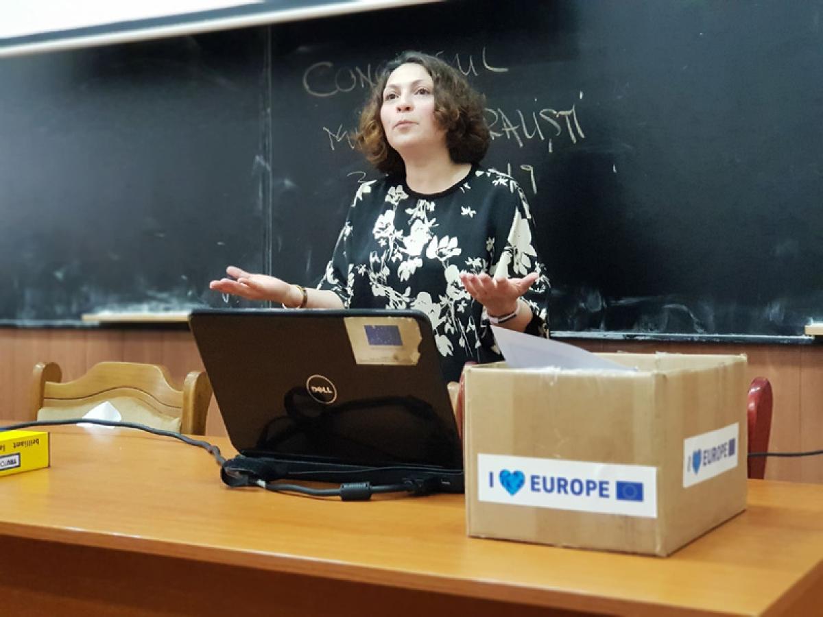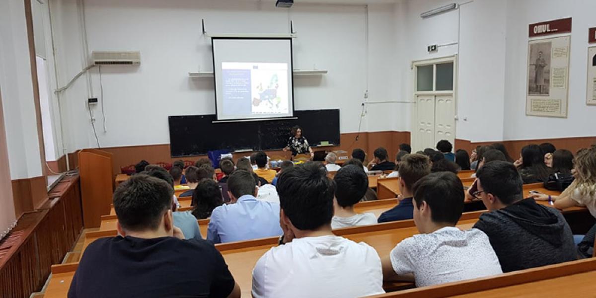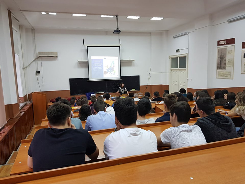 Întâlnirea de ieri a fost cel de-al doilea eveniment organizat de Colegiul Naţional “Nicolae Bălcescu” în cadrul programului european “EU Back to School”, după ce, în luna aprilie, elevii s-au întâlnit cu Iuliana Buzdugan, translator al Comisiei Europene.
