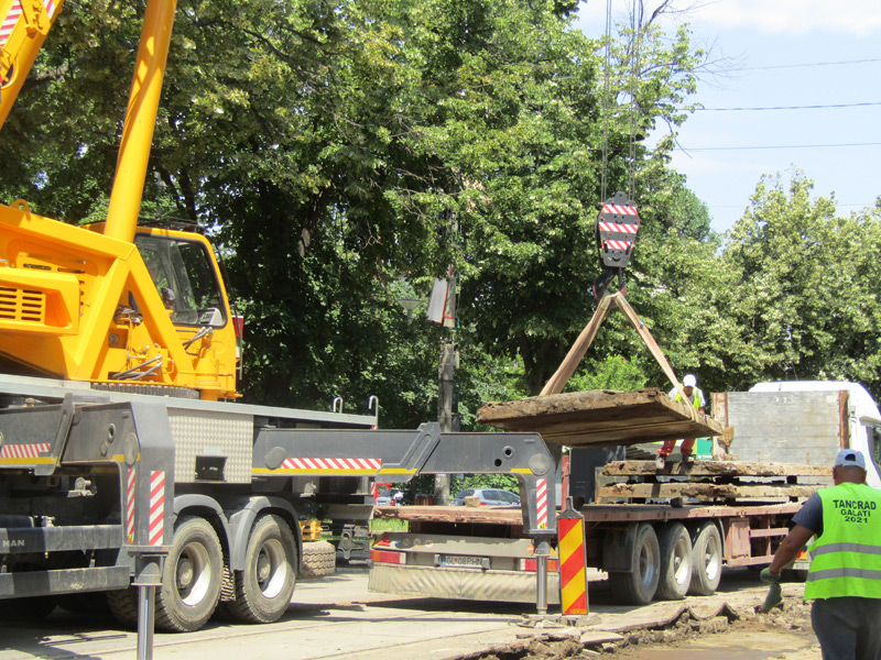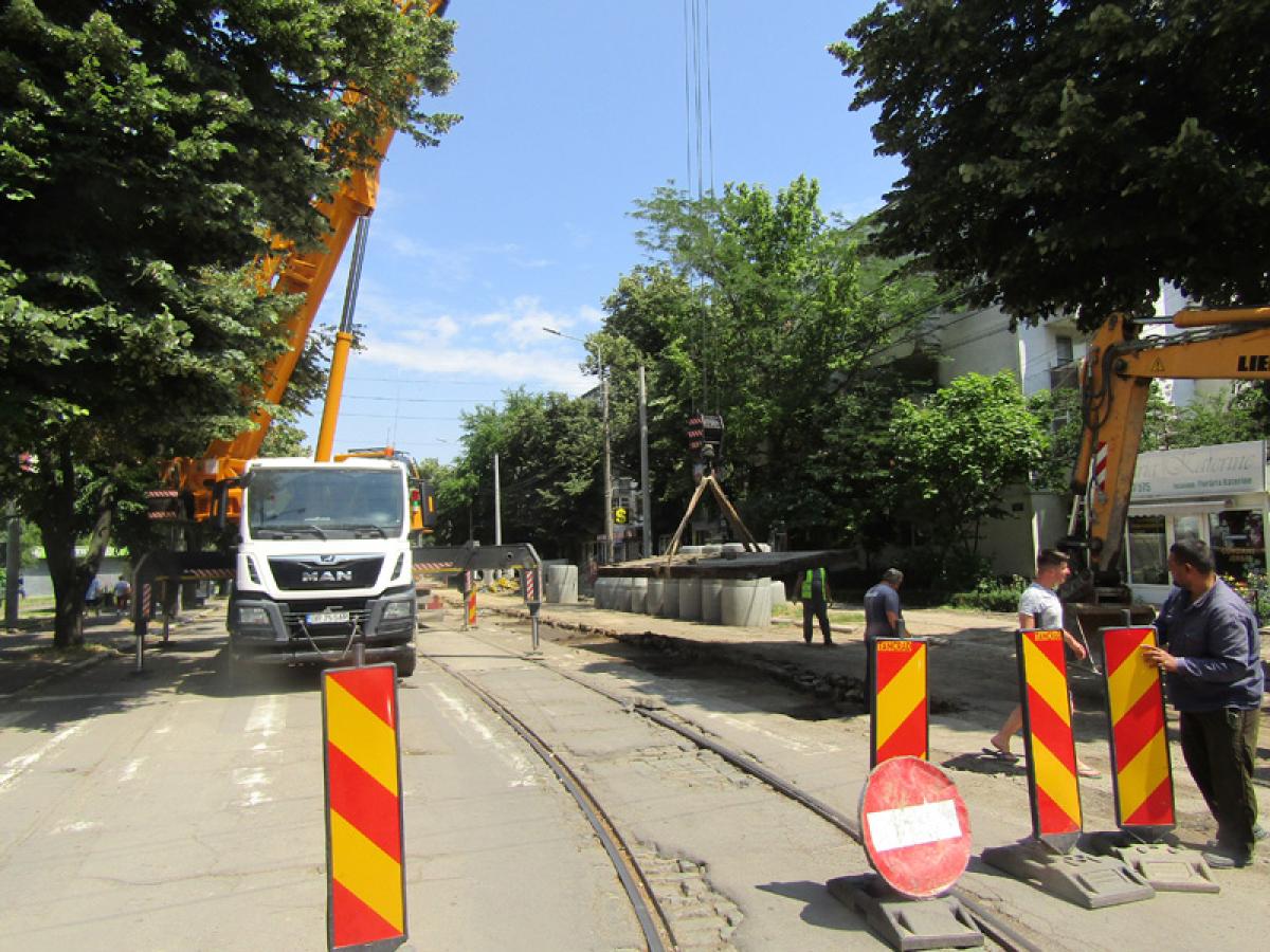 După plantarea noilor stâlpi și montarea căminelor de vizitare la rețeaua subterană, constructorul a trecut la scoaterea acelor plăci lungi din beton armat în care au fost încastrată calea de rulare a tramvaielor.