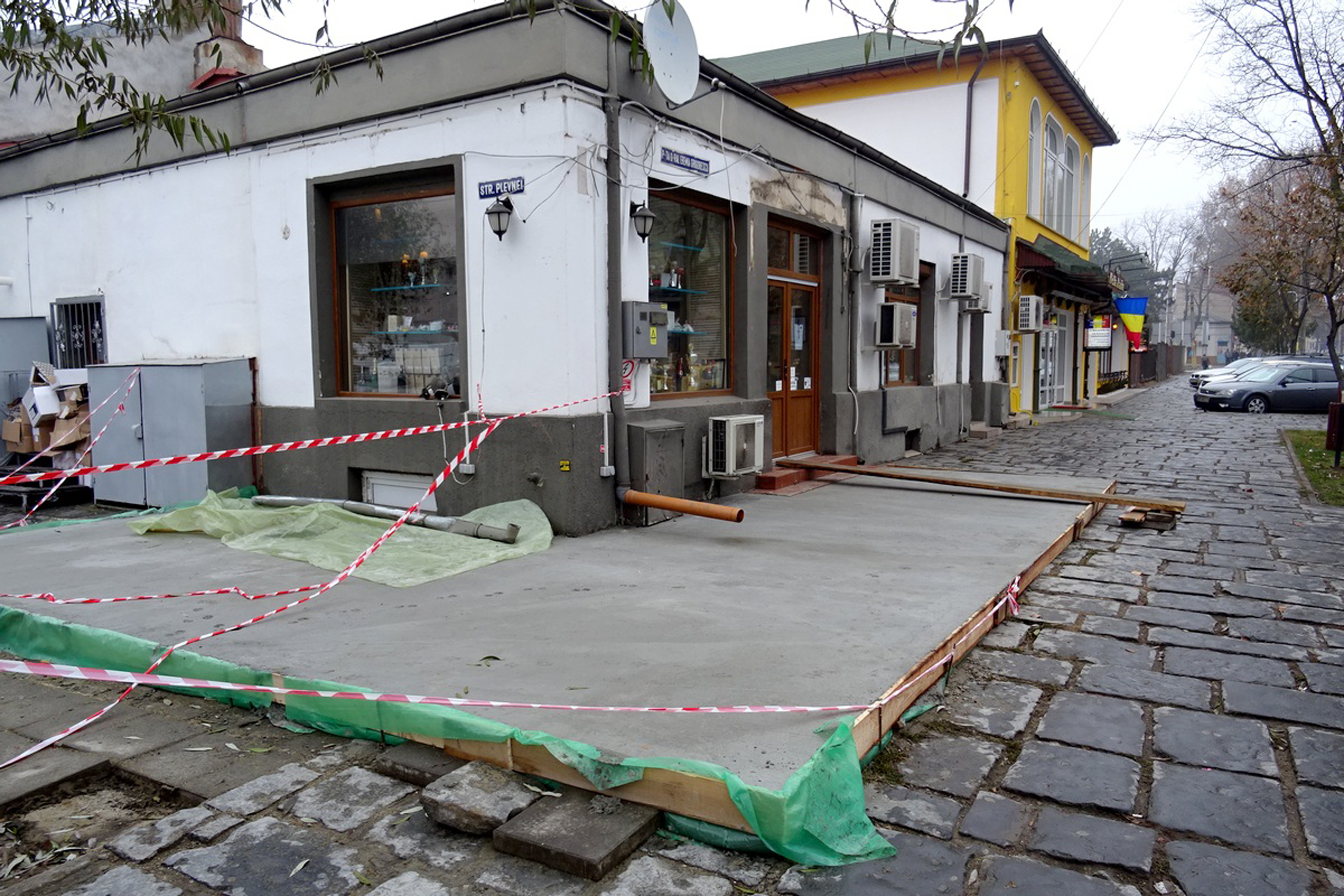 • demolarea, dispusă de Poliţia Locală, a fost executată pe cheltuiala agentului economic vinovat • în caz contrar, acesta s-ar fi ales cu dosar penal, fapta fiind încadrată ca infracţiune • placa de beton fusese turnată în dreptul unei cofetării situate la intersecţia străzii Gral. Eremia Grigorescu (fosta Gării) cu strada Plevna şi ar fi trebuit să servească, cel mai probabil, pentru amenajarea unei terase