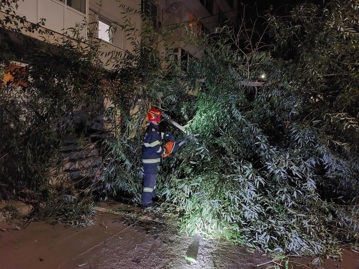 * marți, 26 septembrie, un arbore s-a prăbușit în dreptul scării 3 a blocului 18, de pe Calea Galați, blocând practic intrarea în imobil * pompierii sosiți la fața locului au degajat zona * Asociația de Proprietari nr. 259 făcuse solicitare către Seroplant, încă din luna martie a.c. să fie toaletați patru copaci, printre care și salcia în cauză * abia după incidentul de zilele trecute, angajații Seroplant au sosit la fața locului și au tăiat sau toaletat nu patru ci opt copaci care erau uscați sau care afectaseră pereții exteriori ai blocului