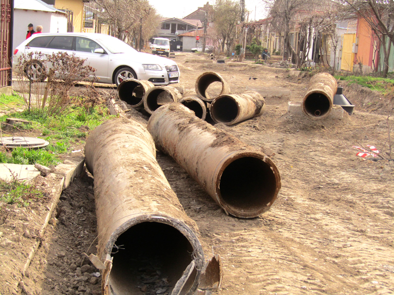 • este vorba despre strada Neagoe Basarab din Chercea, rămasă restantă la modernizările executate anul trecut • o conductă veche de beton a fost motivul pentru care pe această stradă nu s-au putut executa lucrările de refacere a fundației și de asfaltare • abia zilele trecute, echipe ale CUP ”Dunărea” au început operațiunea de îndepărtare a acelei conducte, însă la scurt timp au apărut și reclamații din partea unor locatari ai străzii