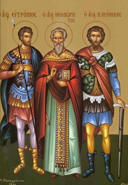 Au urmat alte tentative de a-i îndupleca să jertfească zeilor, însă cei trei nu au renunţat la Hristos. Eutropie şi Cleonic au fost crucificaţi în oraşul Pontine Amasea (Asia Mică) pe 3 martie 308. Trupul Sf. Eutropie a fost luat de Velonic, uns cu mir şi dus într-un sat, la optsprezece stadii de cetate, iar trupul Sf. Cleonic a fost dus în satul Chima. Sf. Vasilisc a fost executat mai târziu, pe 22 mai, în Komana.