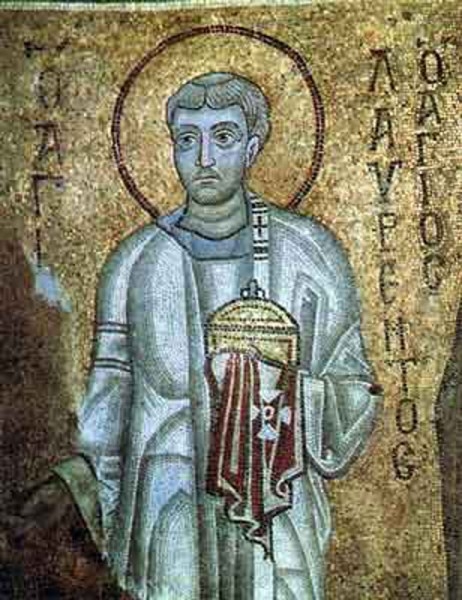 După multe chinuri, Lavrentie a fost întins pe un grătar şi aşezat pe cărbuni aprinşi. Iar arhidiaconul le-a spus păgânilor: "Eu mă dau ca jertfă singurului Dumnezeu adevărat, pentru că jertfa ce se cuvine Lui Dumnezeu este o inimă înfrântă şi smerită" (Psalmii 50 :18). Pe când călăii aţâţau focul, Lavrentie i-a vestit împăratului: "Învaţă că acest foc mă răcoreşte, dar pe tine te va chinui veşnic. Acum că sunt ars pe o parte, întoarce-mă pe partea cealaltă"! Iar după ce a fost întors şi pe cealaltă parte, Sfântul Lavrentie a rostit o ultimă rugăciune: "Mulţumesc Ţie, Iisuse Hristoase, pentru că m-ai învrednicit să intru pe porţile Împărăţiei Tale!"