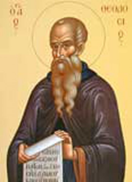 "Cu ale lacrimilor tale curgeri ai lucrat pustiul cel neroditor şi cu suspinurile cele dintru adânc ai făcut ostenelile tale însutit roditoare; şi te-ai făcut luminător lumii, strălucind cu minunile, Teodosie, părintele nostru. Roagă-te Lui Hristos Dumnezeu ca să mântuiască sufletele noastre!" (Troparul Sfântului Teodosie cel Mare).
