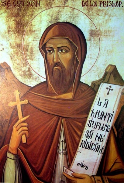 "Cu curgerile lacrimilor tale ai lucrat pustiul cel neroditor şi cu suspinurile cele dintru adanc ai facut ostenelile tale însutit roditoare; şi te-ai făcut luminător lumii, strălucind cu minunile, Ioan, părintele nostru. Roagă-te Lui Hristos Dumnezeu ca să mântuiască sufletele noastre!" (Troparul Sfântului Cuvios Ioan).
