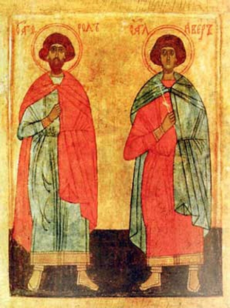 După ce L-au mărturisit dascălii lor pentru Hristos, Flor şi Lavru s-au dus în Iliricum, Dardania, în cetatea Ulpianilor, unde, cercând pietre, îşi făceau meşteşugul lor pe lângă Licon ighemonul. Mai apoi, Licon i-a trimis la Liciniu, fiul împărătesei Elpidia. Şi dându-le bani, Liciniu le-a poruncit gemenilor să zidească o capişte idolească, dându-le, totodată şi planul edificiului. Dar sfinţii, luând banii, i-au împărţit săracilor. Noaptea se rugau către Dumnezeu, iar ziua lucrau şi înfrumuseţau locaşul. Şi peste puţine zile l-au şi isprăvit, fiind ajutaţi şi întăriţi de îngeri. Îndată Merentie, preotul idolesc, a crezut în Hristos, după ce fiul său, Atanasie, fusese tămăduit la ochi. Şi strângând mucenicii Lui Hristos săracii cărora le dăduseră bani, au legat idolii cu funii de grumaji şi i-au doborât de pe socluri. După aceea, aprinzând lumânări, au închinat lăcaşul Lui Dumnezeu şi-l sfinţiră pentru Hristos, zicând: "Slavă Ţie, Hristoase Dumnezeule, lauda Apostolilor şi bucuria mucenicilor!", mergând înainte cu cinstita Cruce.
