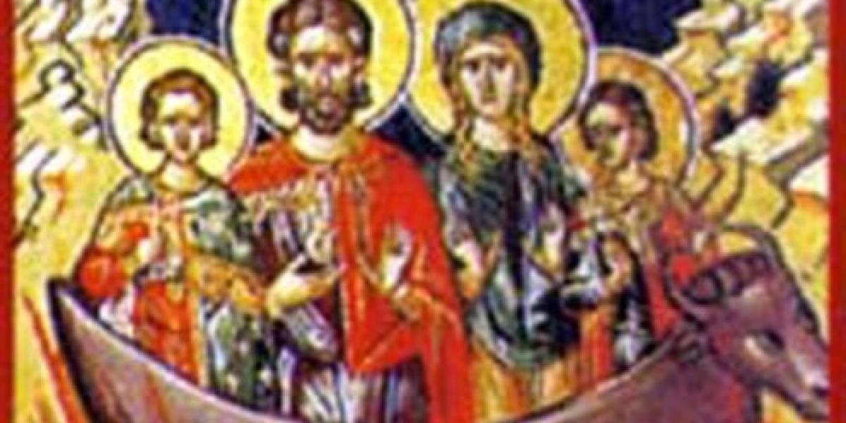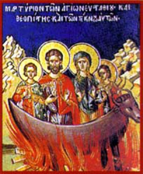 Între timp, împăratul Traian a murit, iar noul impărat, Adrian, i-a cerut generalului să aducă jertfe zeilor. Pentru că a refuzat, Eustaţie a fost aruncat fiarelor sălbatice, împreună cu familia sa. Pentru că acestea nu le-au făcut niciun rău, mărturisitorii au fost aruncaţi într-un cazan de aramă încins. Minune: a treia zi, trupurile sfinţilor au fost scoase întregi şi nearse, spre uimirea călăilor.