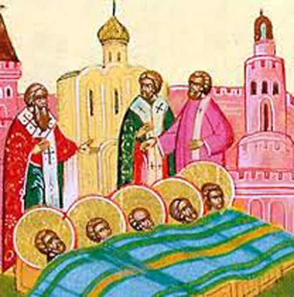 "Mucenicii Tăi, Doamne, întru nevoinţele lor, cununile nestricăciunii au dobândit de la Tine, Dumnezeul nostru; că având puterea Ta, pe chinuitori au învins; zdrobit-au şi ale demonilor neputincioasele îndrăzniri. Pentru rugăciunile lor, mântuieşte sufletele noastre, Hristoase Dumnezeule!" (Troparul Sfinţilor Mucenici din Evghenia)