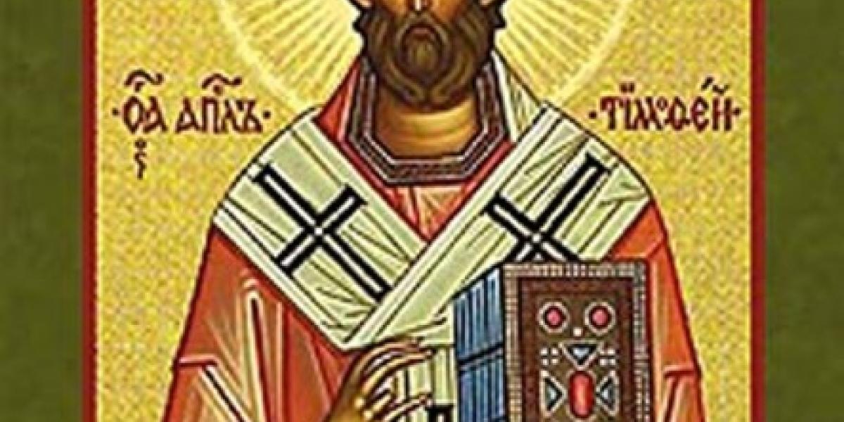 Mai târziu, după ce Sfântul Apostol şi Evanghelist Ioan a fost alungat de împăratul Domiţian şi exilat în Insula Patmos, Sfântul Apostol Pavel l-a hirotonit episcop în locul acestuia. Pătimirea Sfântului Apostol Timotei este legată de o sărbătoare care se ţinea în cinstea zeilor. Exista obiceiul ca, într-o anume zi din an, închinătorii la idoli să poarte măşti şi să-i omoare pe cei pe care-i întâlneau pe străzi. Socoteau că aşa le aduc jertfă zeilor. În timpul acestui obicei crud, Timotei a ieşit cu îndrăzneală în faţa păgânilor şi L-a mărturisit pe Hristos. Nefiind de acord cu spusele Sfântului Timotei, păgânii l-au bătut până când şi-a dat duhul. Trupul apostolului a fost îngropat cu cinste în locul ce se numea Pion. Mai târziu, din porunca împăratului Constantiu (337-361 d.H.), moaştele Sf. Timotei au fost duse la Constantinopol, de Sfântul Artemie mucenicul şi puse în biserica "Sfinţii Apostoli", alături de moaştele Sf. Apostoli Luca şi Andrei.