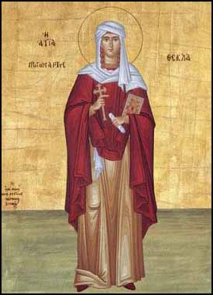 Ascultând timp de trei zile şi trei nopţi predicile apostolului, Tecla s-a convertit la creştinism şi s-a hotărât să ducă o viaţă curată, de fecioară. Auzind că nu mai vrea să se căsătorească, mama sa a bătut-o, a torturat-o şi a înfometat-o. Pentru că nici aceste chinuri nu au făcut-o pe Tecla să se lepede de credinţa în Hristos, păgâna a dat-o pe mâna judecătorului cetăţii, cerându-i să o ardă în foc, spunând că "nu este fiica ei, ci este ramură uscată şi blestemată". Tânăra a fost aruncată în foc, dar a ieşit nevătămată.