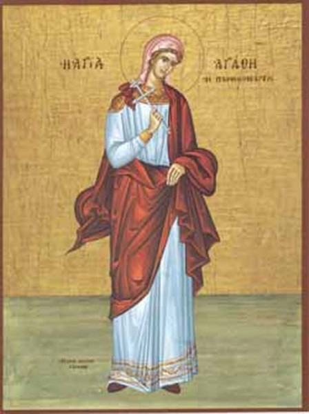 Sfânta Muceniţă Agata a trecut la cele veşnice în temniţă. Datorită vindecării sale miraculoase, este socotită ocrotitoarea femeilor bolnave de cancer la sân.