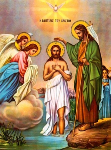Când a venit Hristos pe malul Iordanului, Ioan, luminat de Duhul Sfânt, Îl recunoaşte şi-L arată mulţimilor, zicând: "Iată Mielul Lui Dumnezeu, Cel ce ridică păcatul lumii!" (Ioan 1, 29). Această mărturie era necesară israelienilor care-L aşteptau pe Mesia cel profeţit cu multe veacuri înainte. Hristos i-a cerut lui Ioan să-L boteze, iar acesta, după o împotrivire de adâncă smerenie, a primit să-L boteze, după rânduiala sa. Iar după Botezul Domnului Hristos, cerurile s-au deschis, Duhul Lui Dumnezeu S-a coborât în chip de porumbel şi a stat peste Mântuitorul, iar Tatăl a mărturisit: "Acesta este Fiul Meu cel iubit, întru Care am binevoit!" (Matei 3, 17).