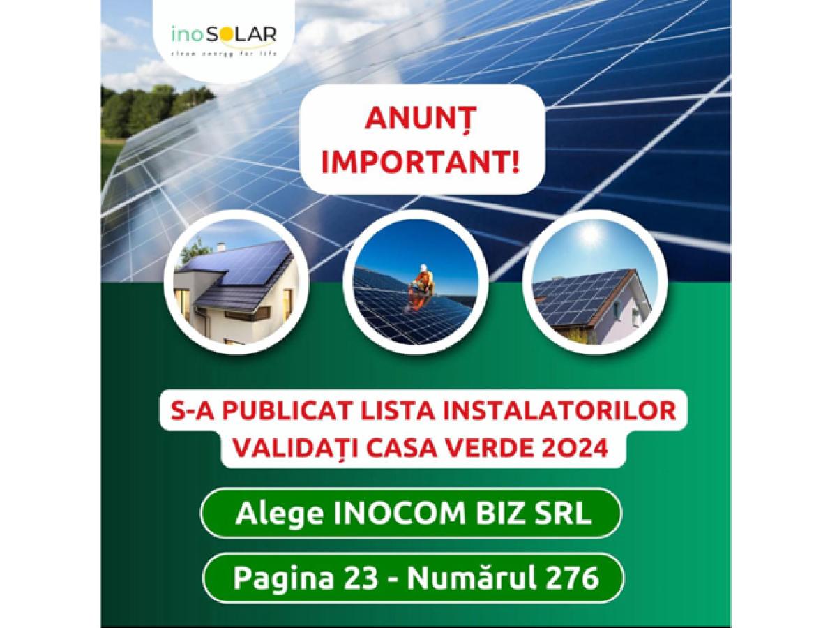 Pentru a beneficia de serviciile inoSOLAR, din lista instalatorilor validați AFM te invităm să alegi INOCOM BIZ SRL, echipa de profesioniști care ți-au pregătit oferta care te prinde: pagina 23, numărul 276.