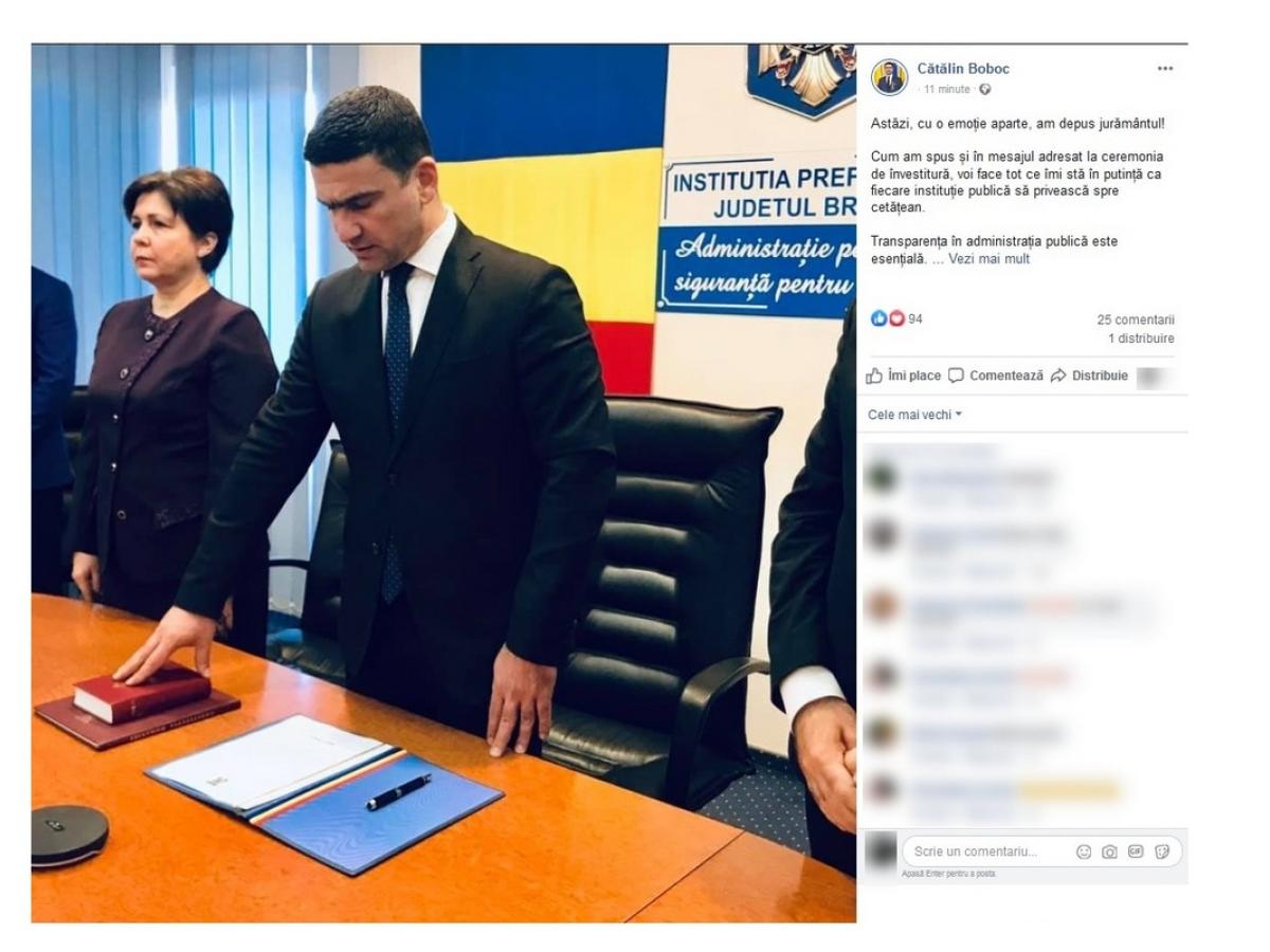 Cătălin Boboc este oficial prefectul județului Brăila. Acesta a depus, astăzi, jurământul, în cadrul ceremoniei de investitură ce a avut loc în sala rondă a Palatului Administrativ. Boboc a postat deja un mesaj de mulțumire pe rețelele de socializare.