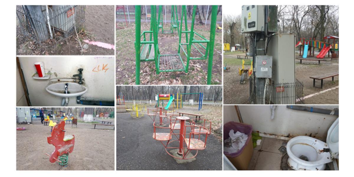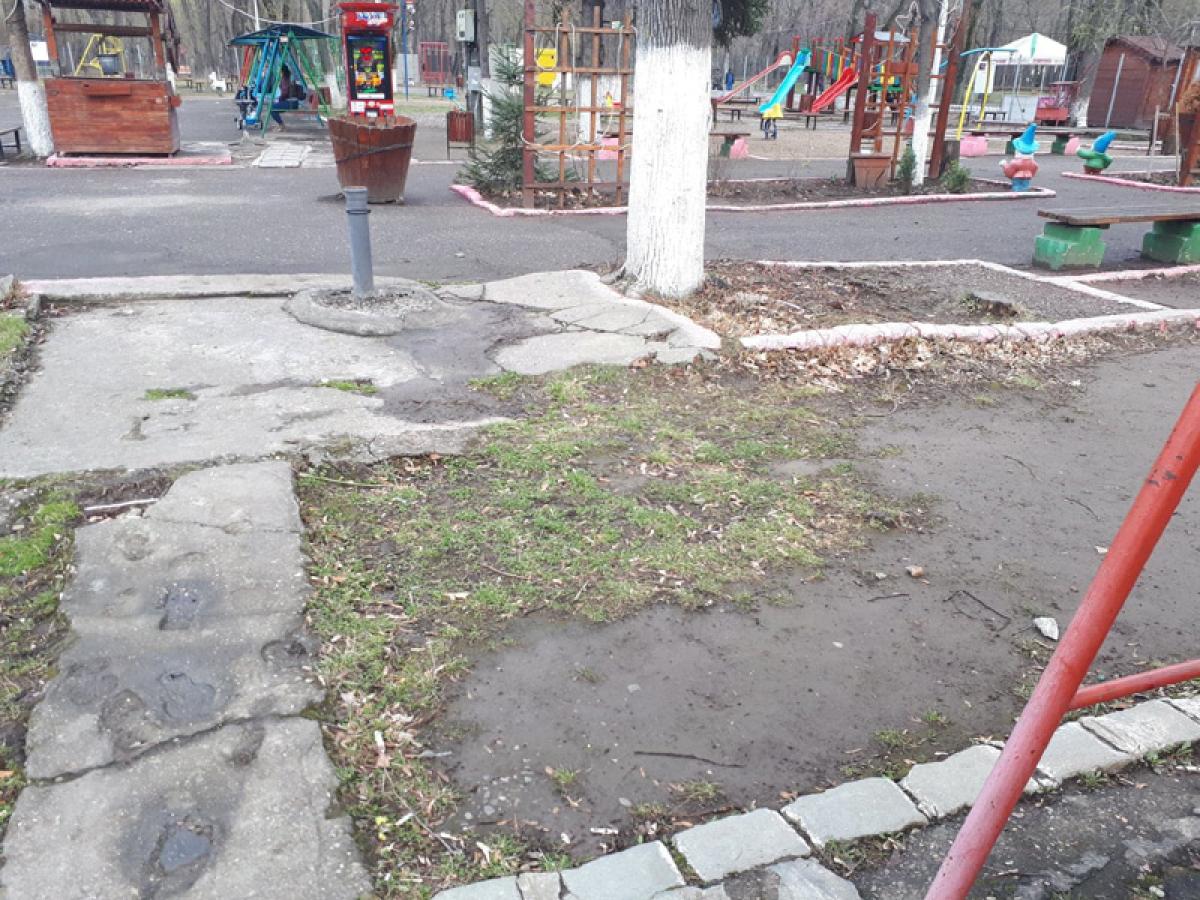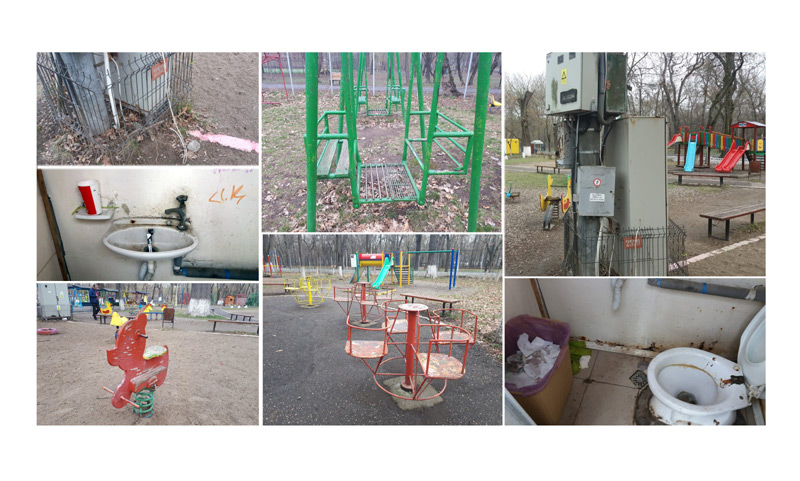 • starea mobilierului de joacă din părculeţul destinat copiilor se înrăutăţeşte de la un anotimp la altul • bănci fără scânduri, leagăne fără scaun, tobogane murdare, totul culminând cu o toaletă infectă - acest peisaj îi va întâmpina pe copiii care abia aşteaptă vremea caldă pentru a se juca în parc • pe de altă parte, primarul Marian Dragomir ne-a declarat că proiectul pentru modernizare este deja pregătit şi se aşteaptă rezolvarea problemei cu bugetul