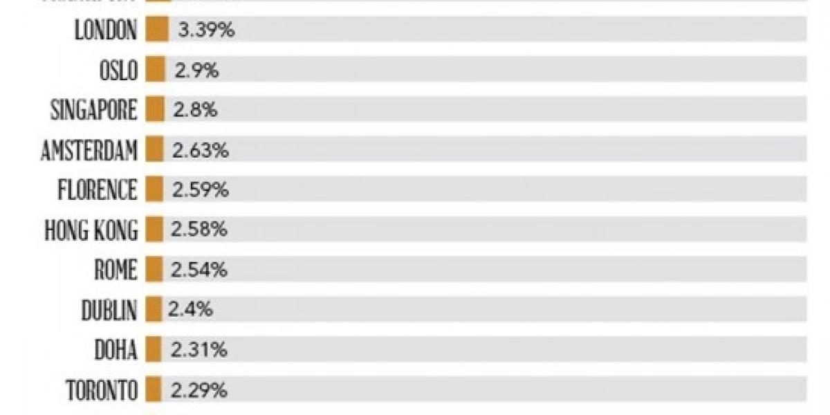 WealthInsight a realizat un clasament al oraşelor, în funcţie de numărul milionarilor în dolari, raportat la întreaga populaţie. Mai mult de jumătate dintre primele douăzeci de metropole se află în Europa, iar două dintre oraşele de pe podium sunt din aceeaşi ţară.