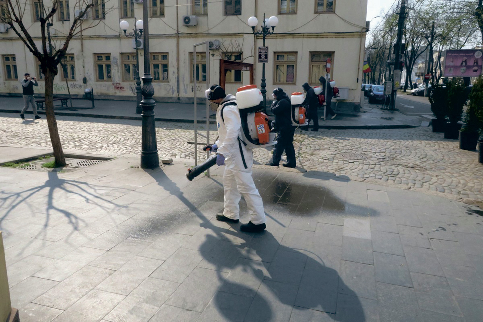 • măsura a fost prevăzută în ultima Ordonanţă Militară adoptată de Guvern, şI pusă în cârca autorităţile locale, dar fără clarificări pe subiect • primarul Dragomir spune că ar exista logistica necesară unei astfel de operaţiuni, însă trebuie să se precizeze clar cine asigură dispozitivele respective şi despre ce fel de dispozitive este vorba - tăvi pentru picioare sau flacoane pentru mâini • de asemenea, se pune problema asigurării soluţiilor dezinfectante care vor fi puse în dispozitive • deocamdată, Primăria se ocupă de dezinfectarea străzilor, parcurilor şi mijloacelor de transport în comun şi dă asigurări că are substanţe pe bază de clor pentru încă o lună de acum încolo