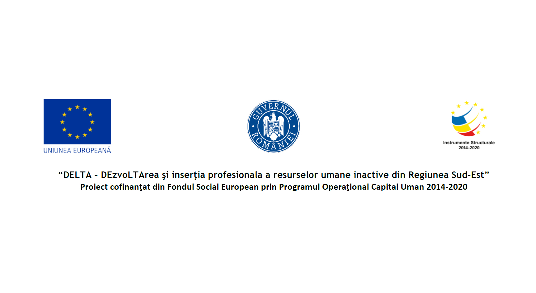 Evenimentul de adresează tuturor angajatorilor care doresc să-şi ocupe locurile de muncă vacante, precum şi membrilor grupului ţintă al proiectului “DELTA – DEzvoLTArea şi inserţia profesională a resurselor umane inactive din Regiunea Sud-Est”, proiect cofinanţat din Fondul Social European prin Programul Operaţional Capital Uman 2014-2020, al cărui beneficiar este SC. RU – EUROPE SRL, Bv. Alexandru Ioan Cuza, nr. 5, bloc Duplex, parter, Brăila, email braila@ru-europe.org.