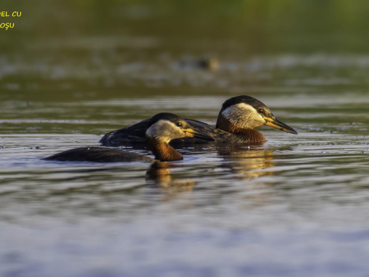 Corcodel cu gât roșu (Podiceps grisegena) - În România specia cuibărește izolat în zone umede, mai ales pe cursul Dunării și în Delta Dunării.