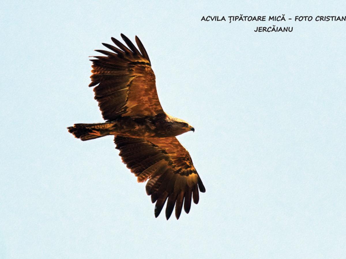 Acvila țipătoare mică (Clanga pomarina) - Este o specie de acvilă de talie medie spre mare. Sexele au penajul asemănător, de culoare maronie relativ uniformă, cu penele de zbor și coadă mai închise la culoare.