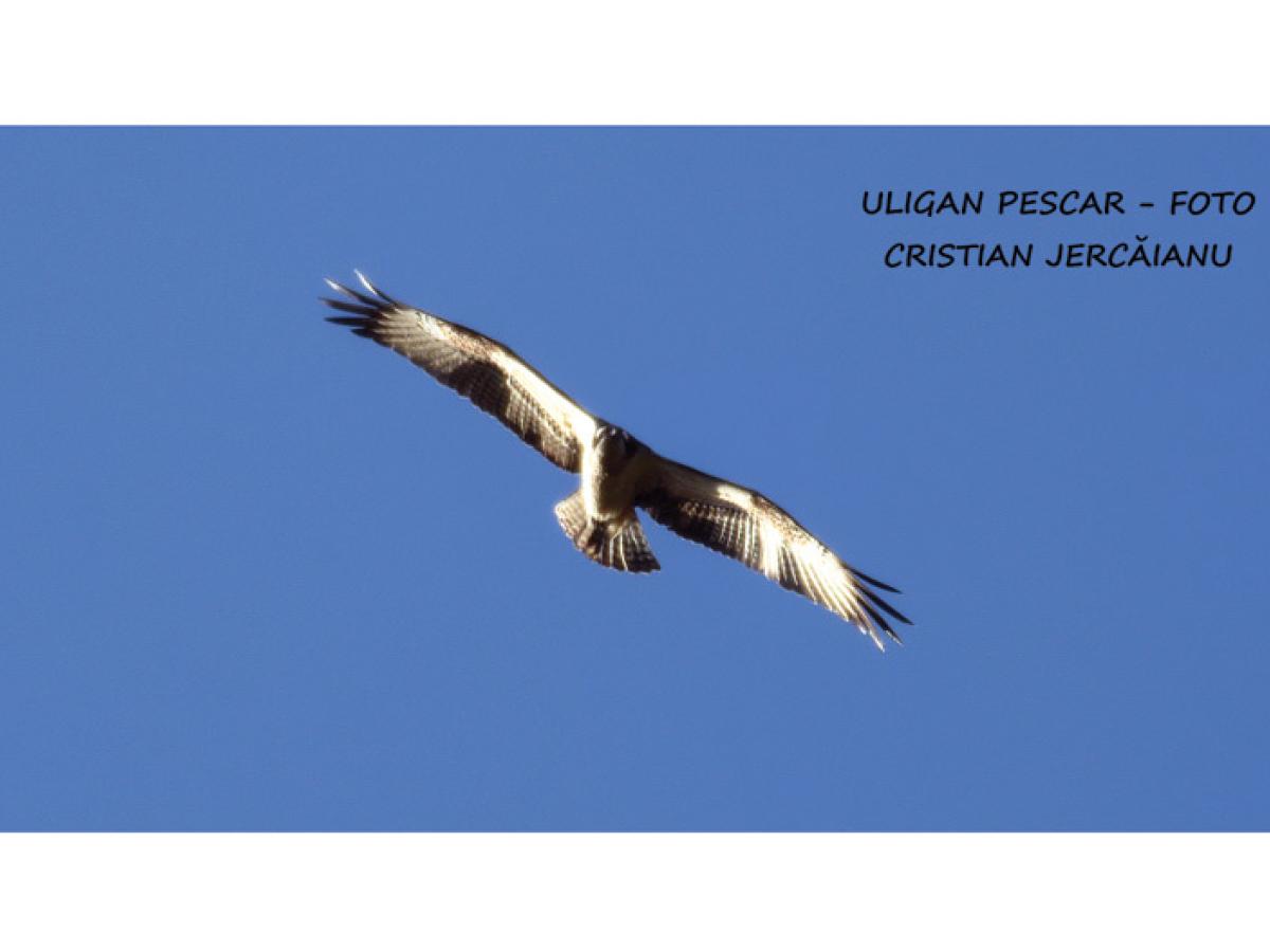 Uligan pescar (Pandion haliaetus) - Uliganul pescar, cunoscut și sub denumirea de vultur pescar, este o specie caracteristică regiunilor cu ape permanente, stătătoare sau cu un curs lent, dulci sau sărate. Este o specie prezentă în vestul și nordul continentului european. Specia este monogamă toată viața și poate trăi 26 de ani. Șansele de supraviețuire sunt estimate la 60% pentru tinerii sub doi ani și 80-90% pentru adulți. Ritualul nupțial se manifestă prin treceri succesive pe deasupra cuibului, însoțite de strigăte având rolul de a descuraja rivalii. Vânează planând în cercuri largi sau „plutind la punct fix”. După ce peștele a fost observat, planează la o înălțime de 10-30 m deasupra acestuia, până cand peștele ajunge într-o poziție potrivită. Apoi plonjează brusc, cu aripile închise pe jumătate și dispare pentru câteva secunde sub apă, după care decolează cu peștele în gheare. Rata de succes în prinderea peștilor variază între 24-74% și depinde de abilitatea păsării și de condițiile climatice. Vulturul pescar nu poate înota și au fost cazuri cand s-a înecat, prinzându-și ghearele în pești prea mari pe care nu i-a putut ridica. Cuibul este așezat pe stânci, în copaci sau pe stâlpii rețelelor electrice, la o distanță de 3-5 km de o zonă umedă. Este alcătuit din crengi și îmbunătățit an de an. Poate atinge un metru în diametru și înălțime. Vulturul pescar își apără cuibul dar nu și teritoriul din jurul cuibului (vânează la o distanță de până la 14 km de la cuib, prada fiind situată la o distanță mare). Iernează în Africa. În România este prezent numai în migrație. Sosește din cartierele de iernare la sfârșitul lui martie sau începutul lui aprilie.