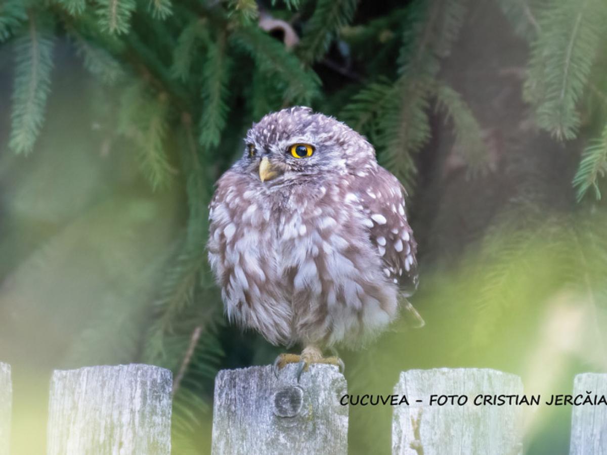 Cucuvea (Athene noctua) - Specie de pasăre răpitoare de noapte de talie mică. Sexele sunt asemănătoare (femela fiind ușor mai mare). Capul și spatele sunt maro cu pete albe, iar ventral este de culoare albă cu pete maro dispuse vertical.