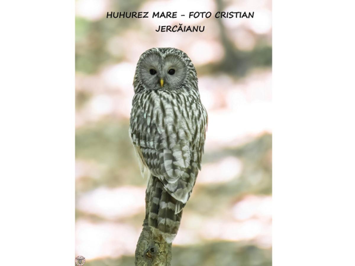 Huhurez mare (Strix uralensis) - Specie de pasăre răpitoare de noapte de talie medie. Sexele sunt asemănătoare (femela fiind mai mare). Penaj gri-maroniu gălbui deschis (mai deschis decât la huhurezul mic), striat cu brun. Cap rotund cu disc facial gri-gălbui uniform, ochi negri și cioc galben. Coada lungă sub formă de pană de despicat (vizibilă în zbor) prezintă pe partea dorsală dungi întunecate și late.