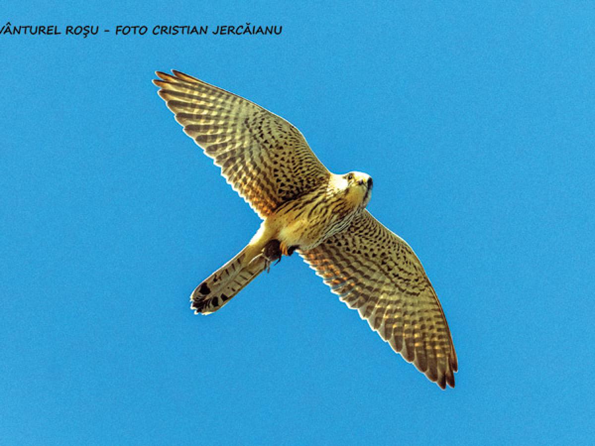 Vânturel roșu (Falco tinnunculus) - Pasăre răpitoare de talie mică. Sexele au coloritul general similar, dorsal fiind maroniu-roșcat, însă la mascul culorile sunt mai intense, iar capul gri-albăstrui (la femelă maroniu). Pe burtă coloritul este mult mai deschis, cu pete dense, închise la culoare.
